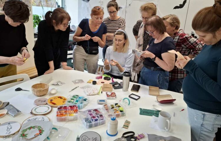 Podczas warsztatów powstały piękne, bogato zdobione kule, zachwycające kolorami i precyzją haftu. Uczestniczki zgodnie podkreślały, że była to technika, której wcześniej nie znały, a możliwość jej poznania sprawiła im ogromną radość. Wiele osób zwracało uwagę na to, jak duże daje ona możliwości twórcze – zarówno jako forma relaksującej pracy ręcznej, jak i sposób na stworzenie oryginalnych, świątecznych prezentów pod choinkę.