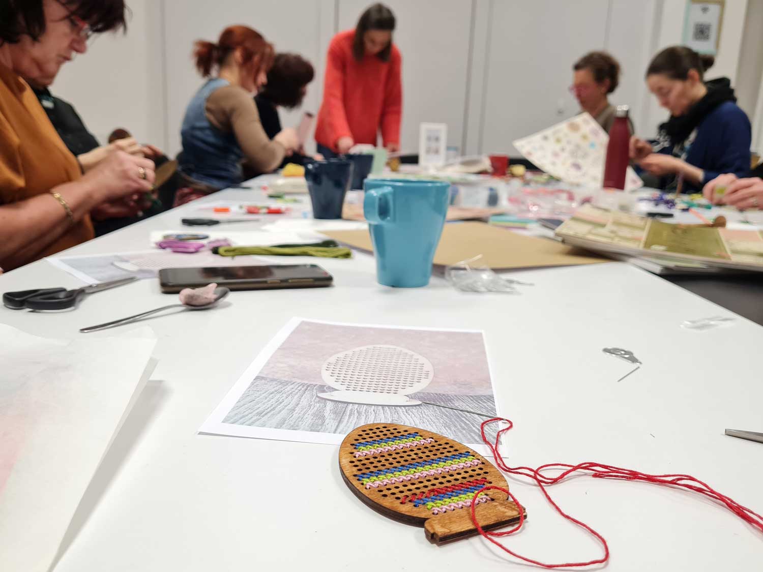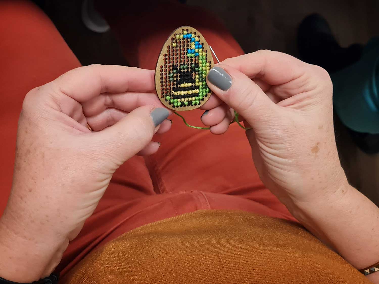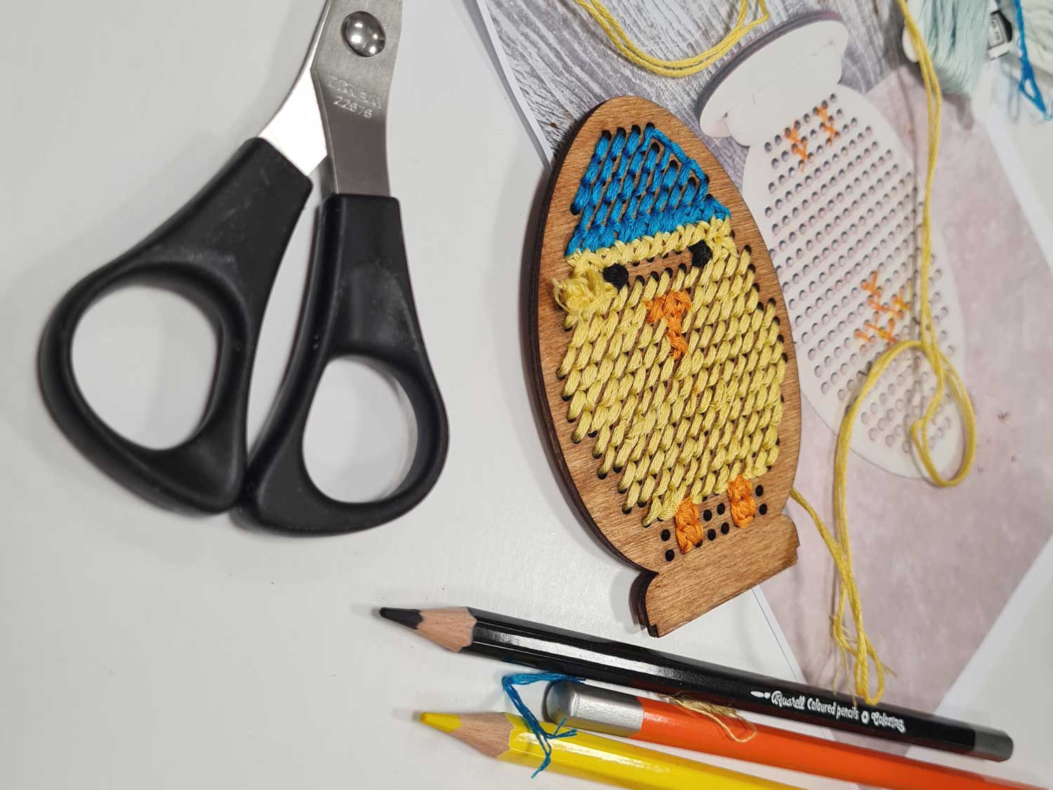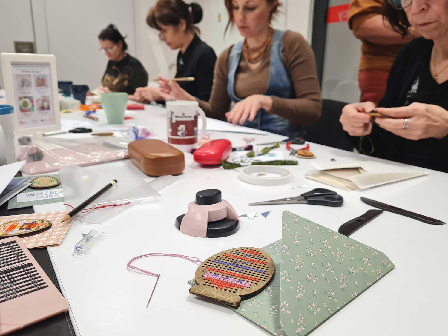 W poniedziałek 11 marca odbyły się kolejne warsztaty z cyklu 𝑷𝑰𝑺𝑨𝑵𝑲𝑨 𝓷𝓲𝓽𝓴ą 𝔃𝓭𝓸𝓫𝓲𝓸𝓷𝓪 – warsztaty opartych na różnych technikach rzemieślniczych. Poniedziałkowe popołudnie spędziłyśmy na wspólnym wyszywaniu drewnianych pisanek. Spotkanie rozpoczęło się od projektowania wzorów, by potem rozpocząć przyjemne wyszywanie 🙂 Miłym zaskoczeniem okazała się możliwość wykonania ozdobnej koperty i kartki świątecznej z wyszywaną pisanką! Niech kartki „lecą w Świat do bliskich” a nam pozostaną miłe wspomnienia z wczorajszego spotkania!