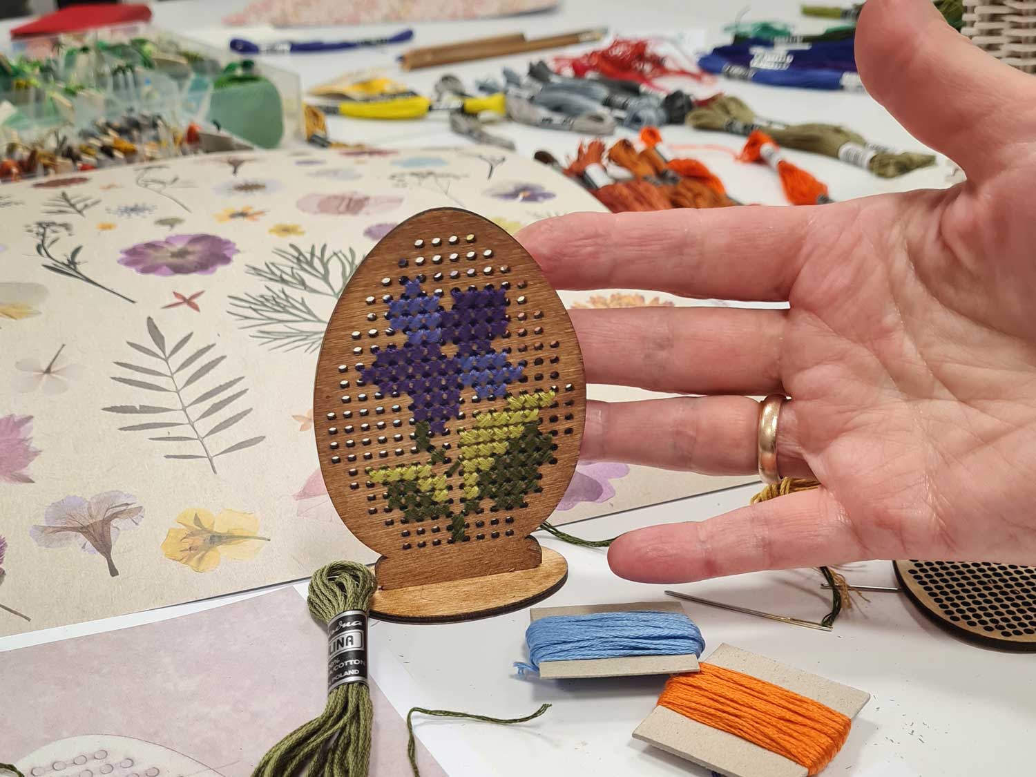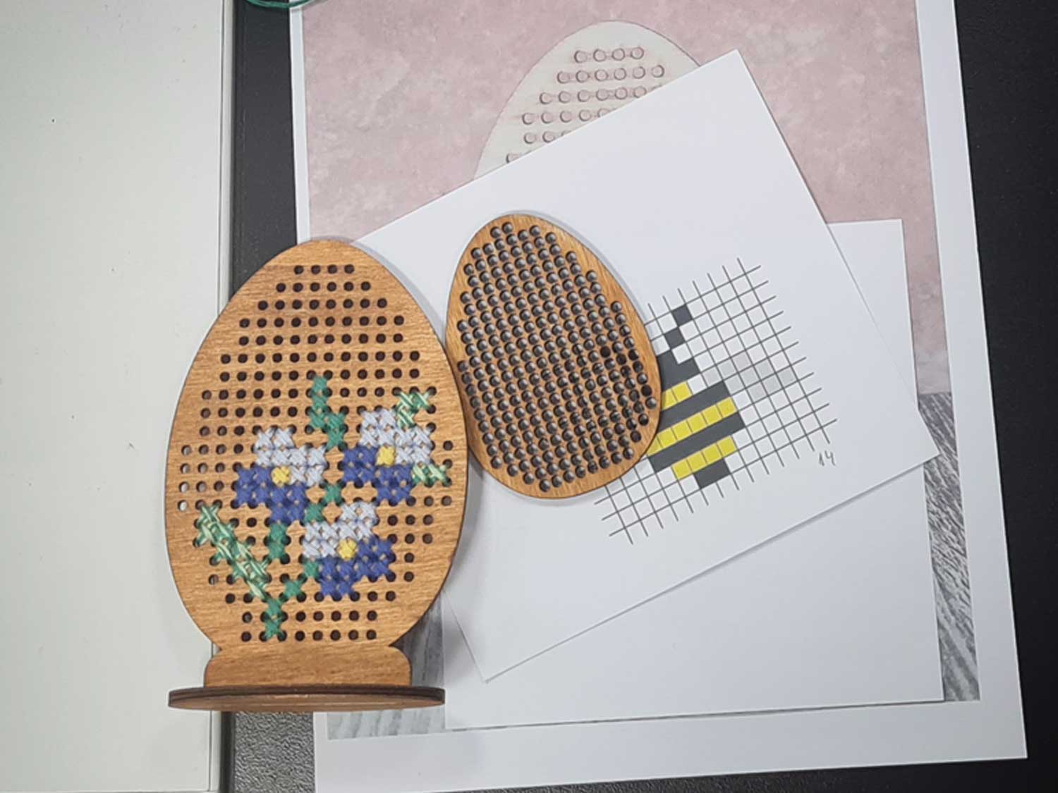 PISANKA „nitką zdobiona” Haft krzyżykowy na drewnie.