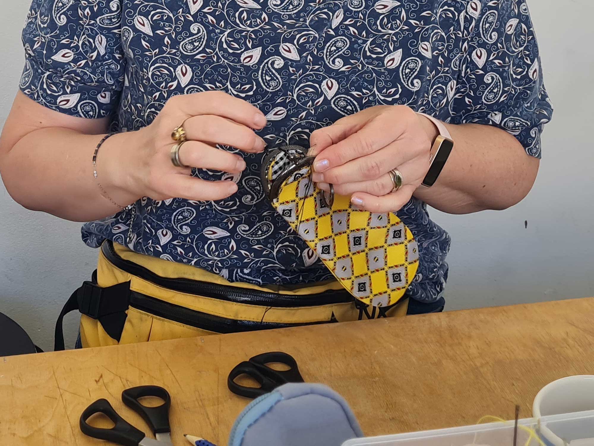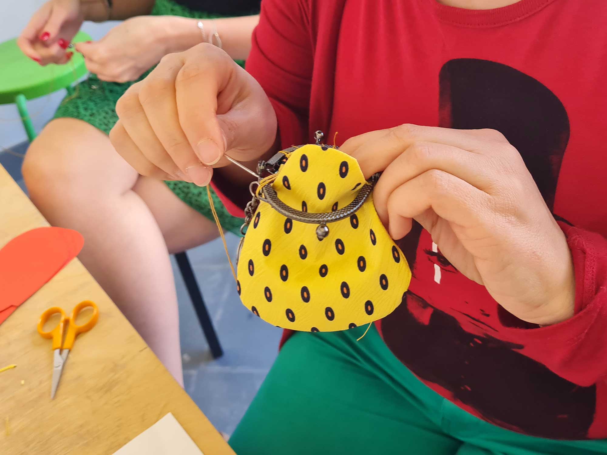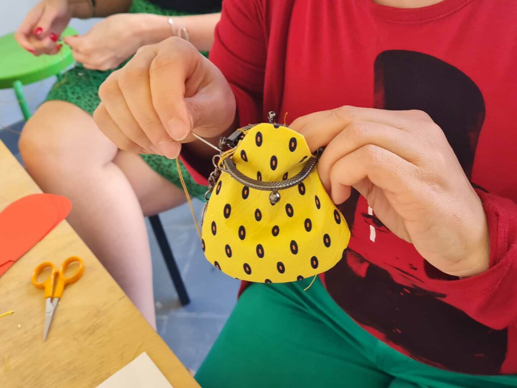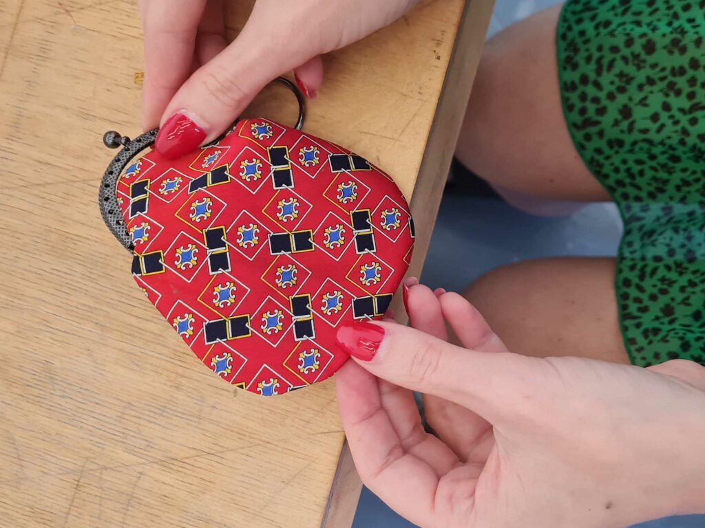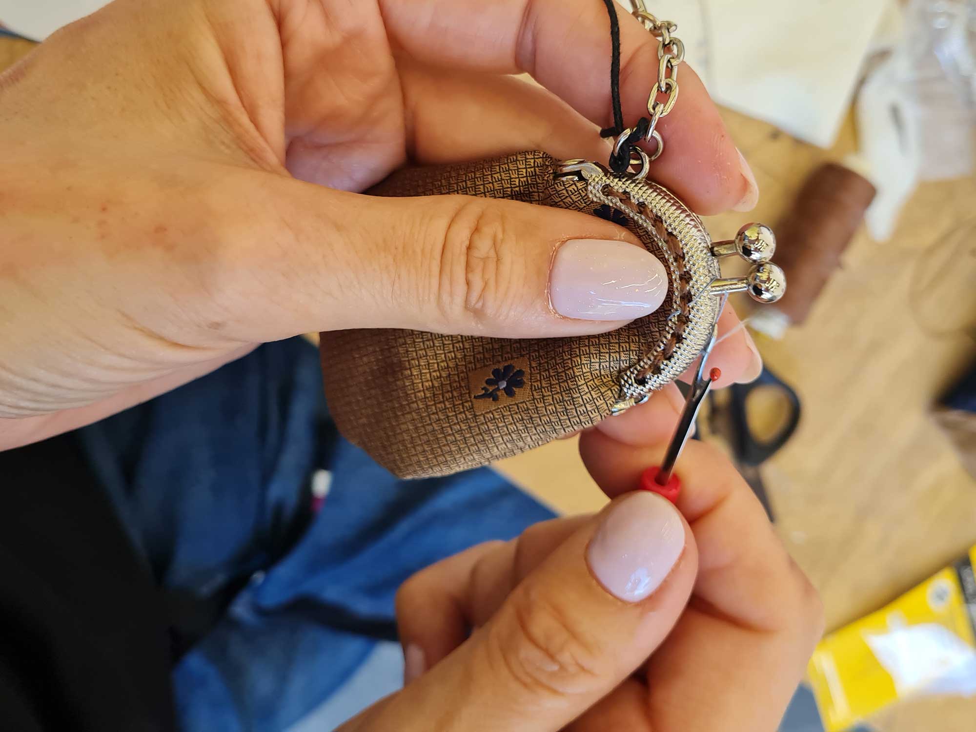 Podczas spotkania uczestniczki zanurzyły się w świat twórczego recyklingu i precyzyjnego rzemiosła. Pod okiem prowadzącej zdobyły praktyczną wiedzę z zakresu szycia portfelików zamykanych na bigiel – od przygotowania wykroju, przez właściwą kolejność łączenia elementów, aż po finalne wykończenie.