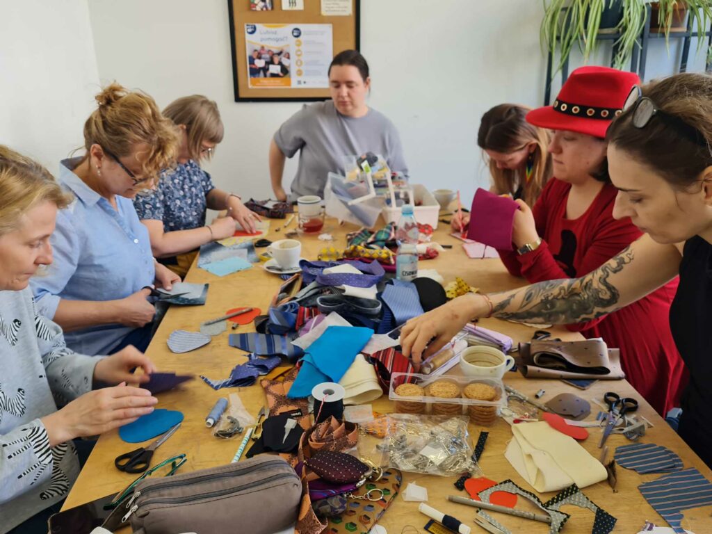 Największą radość sprawił moment, w którym każda uczestniczka mogła zobaczyć efekt swojej pracy: własnoręcznie uszytą portmonetkę z jedwabnych krawatów, pełną charakteru, historii i niepowtarzalnych wzorów. Powstały piękne, unikatowe projekty, które pokazały, jak wiele można stworzyć z pozornie zapomnianych materiałów.