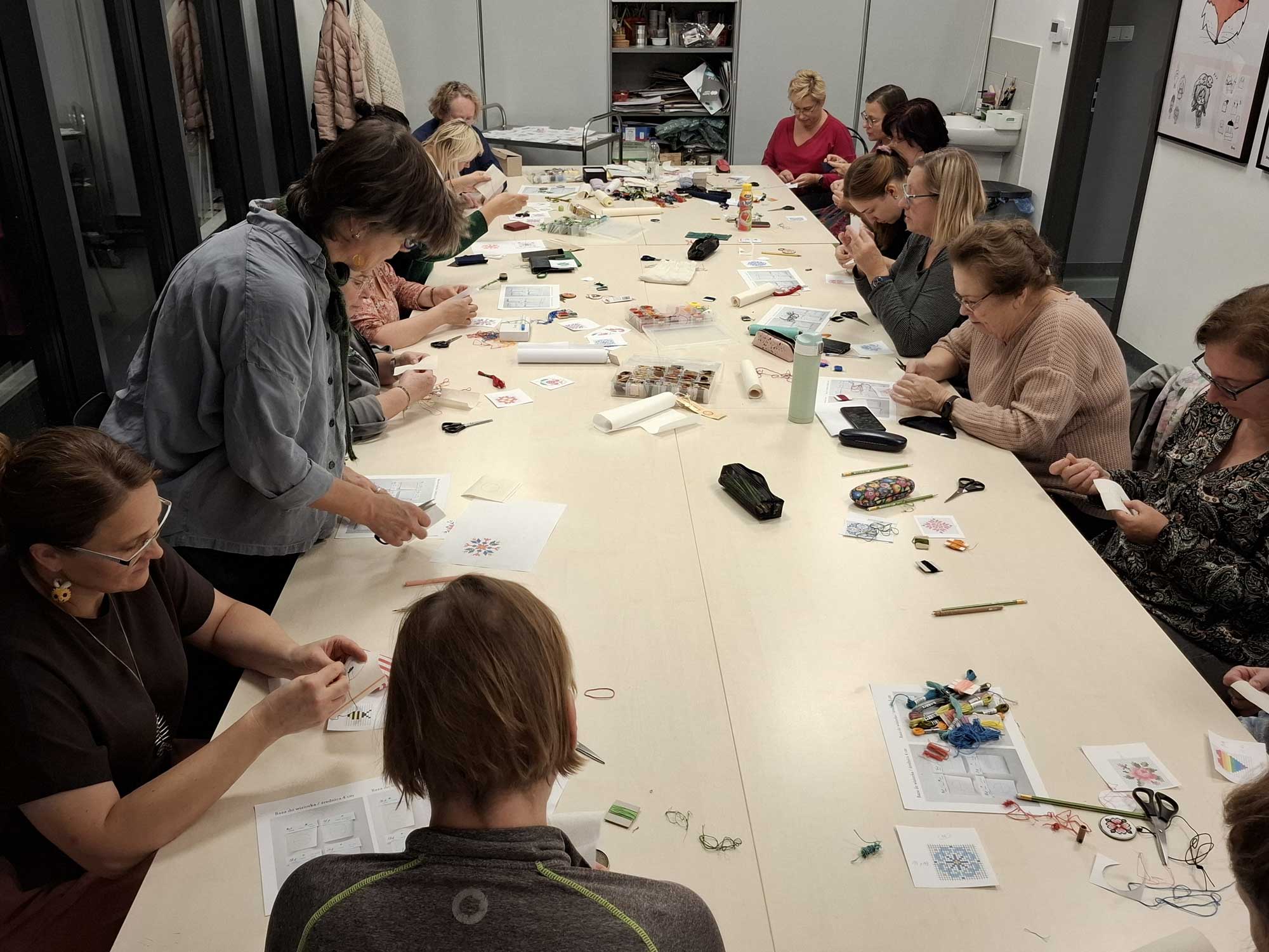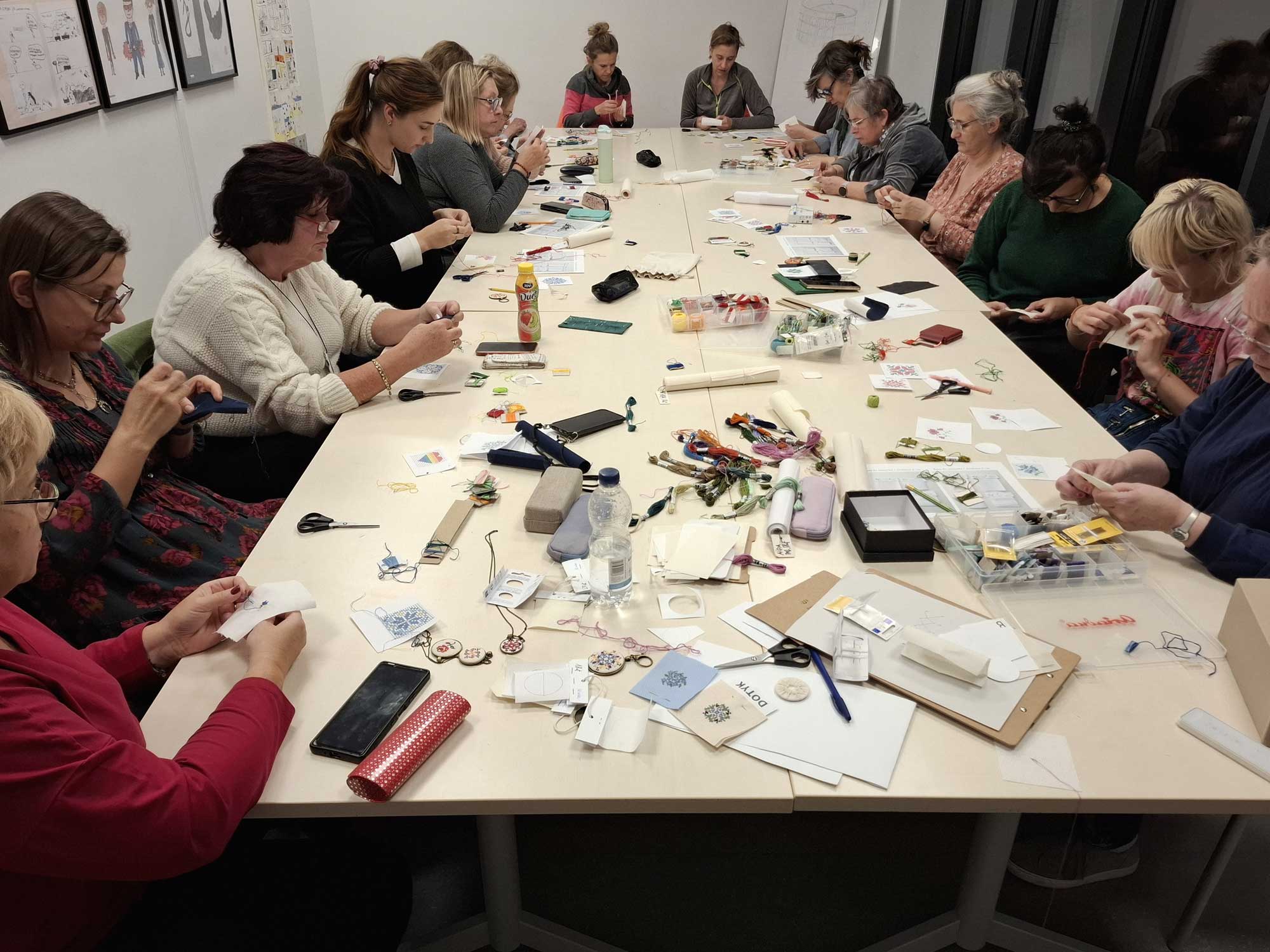 Za nami dwa pełne skupienia i radości spotkania, podczas których uczestniczki Pracowni Prezentów stworzyły maleńkie dzieła sztuki – wyszywane ręcznie wisiory. W czasie warsztatów poznałyśmy technikę prostego haftu krzyżykowego w miniaturowej formie. Każda z uczestniczek własnoręcznie wykonała delikatny haft i oprawiła go w element biżuteryjny, tworząc niepowtarzalny wisior – subtelną ozdobę, w której zamknięty jest czas, cierpliwość i radość tworzenia. To były dwa piękne wieczory pełne rozmów, inspiracji i twórczej atmosfery. Ręcznie wykonana biżuteria po raz kolejny pokazała, że najpiękniejsze prezenty to te, które powstają z serca i własnych rąk.