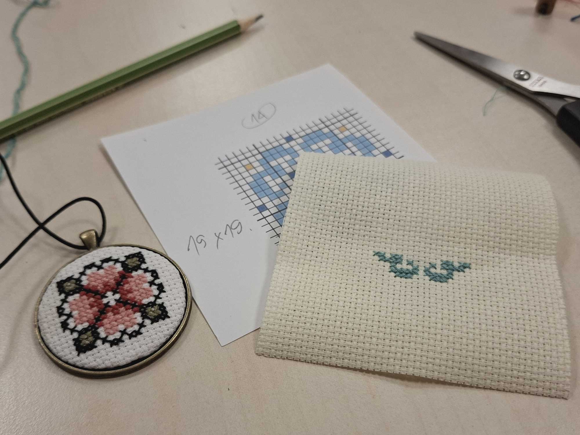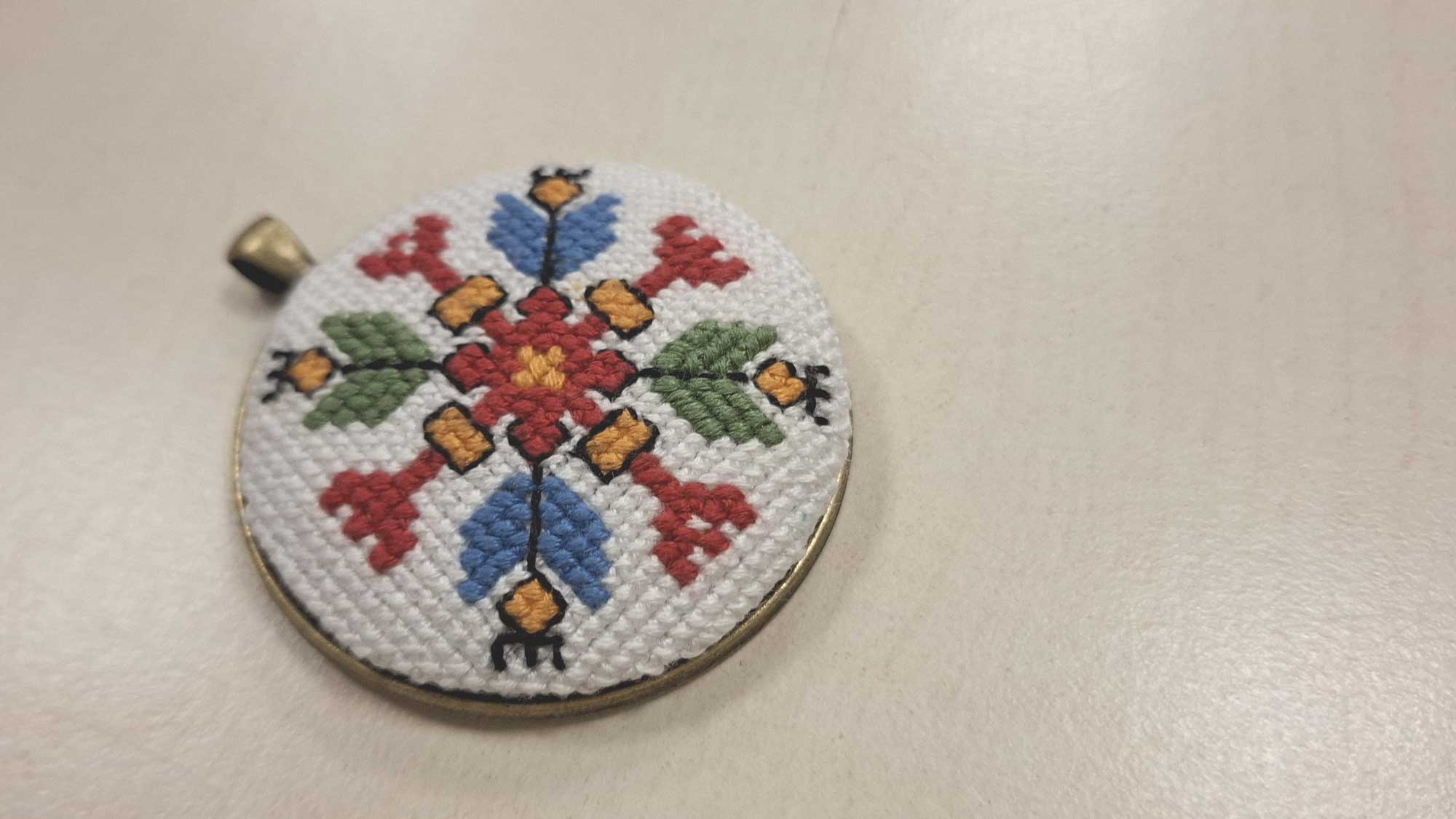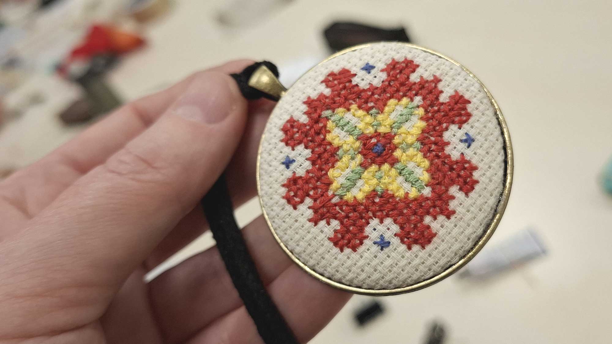 Podsumowanie warsztatów – wyszywany ręcznie wisior.