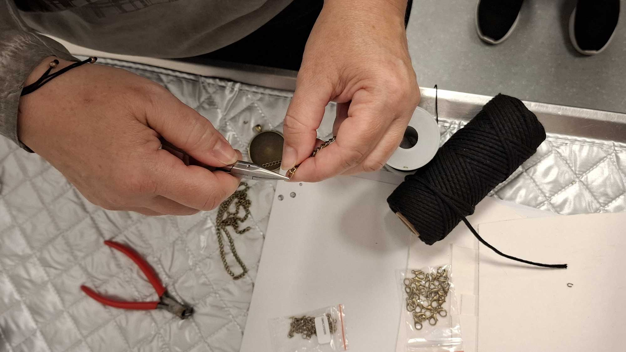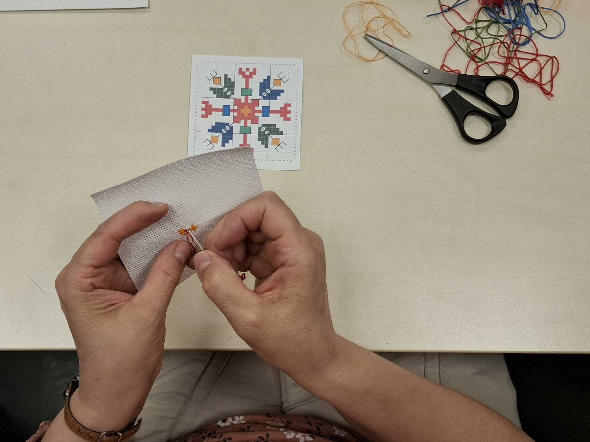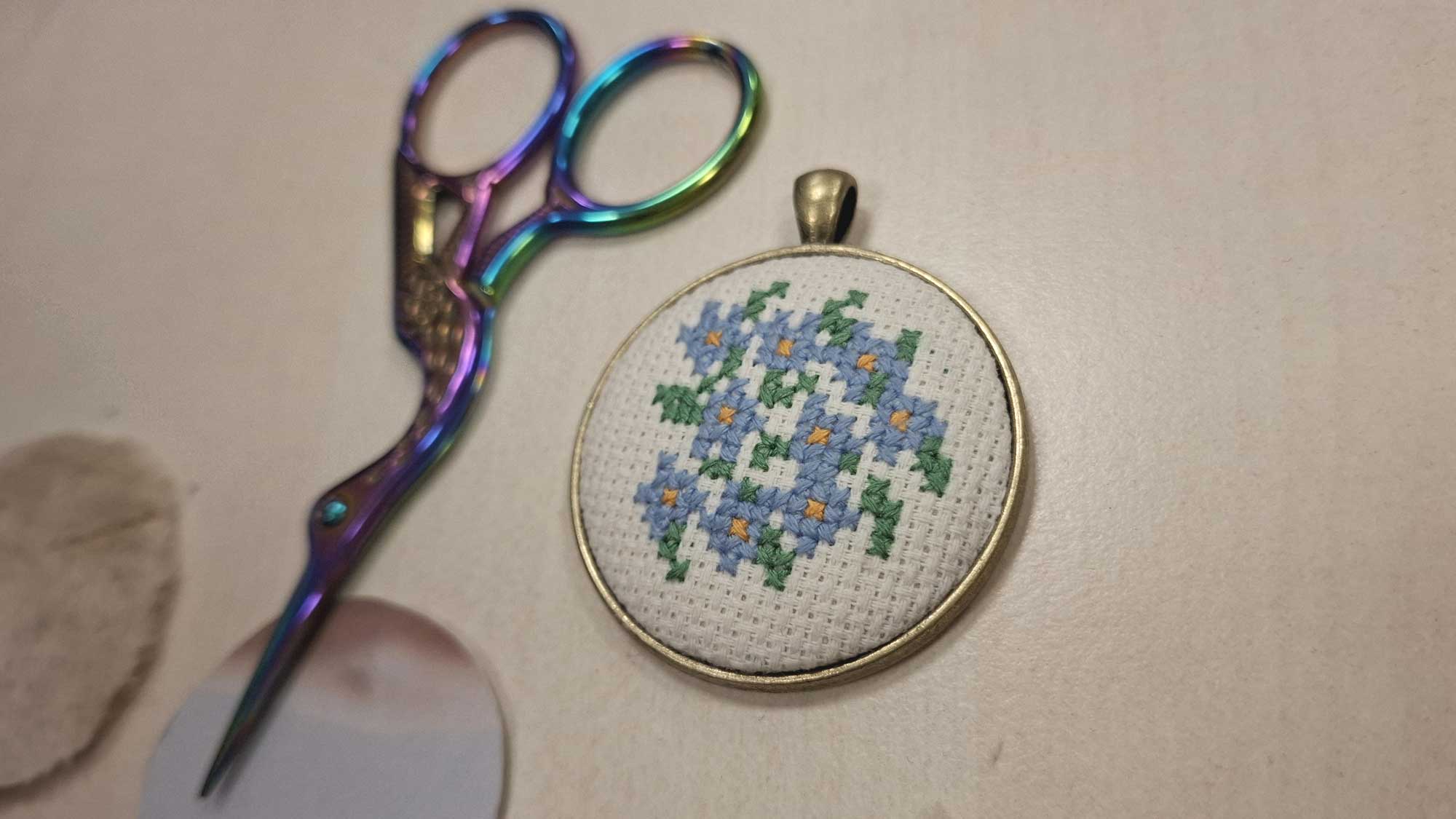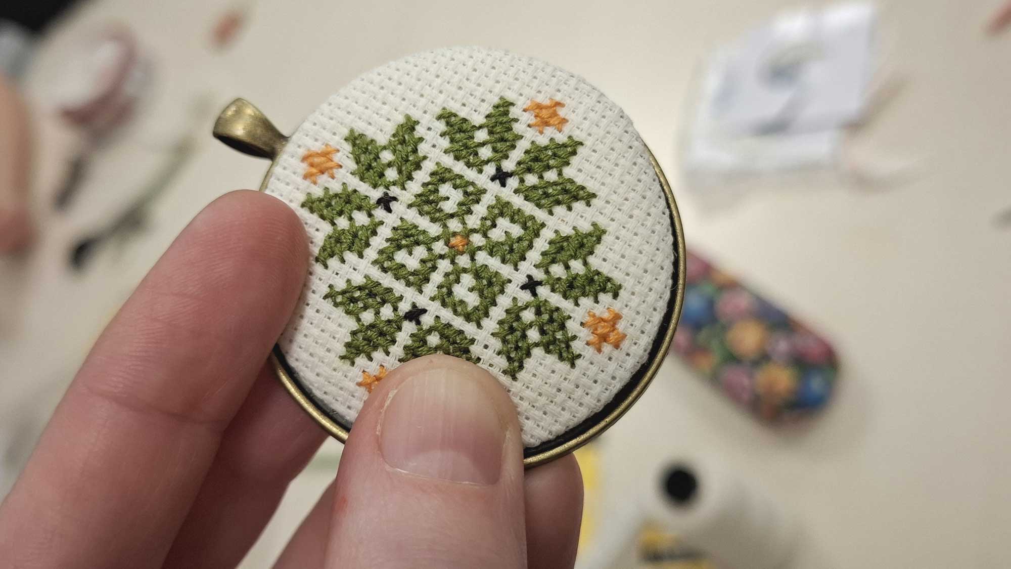 Podsumowanie warsztatów – wyszywany ręcznie wisior.