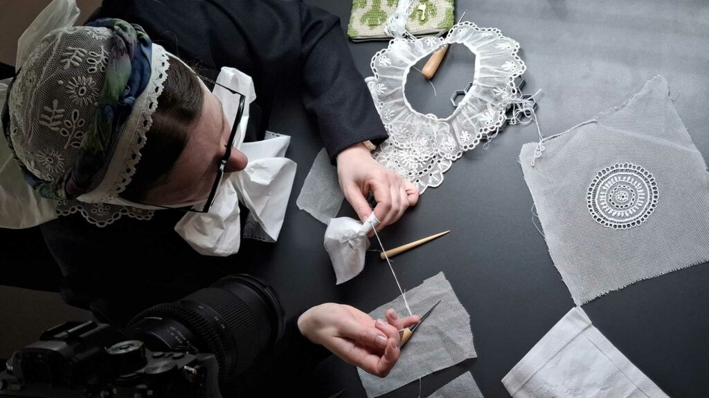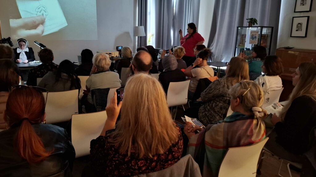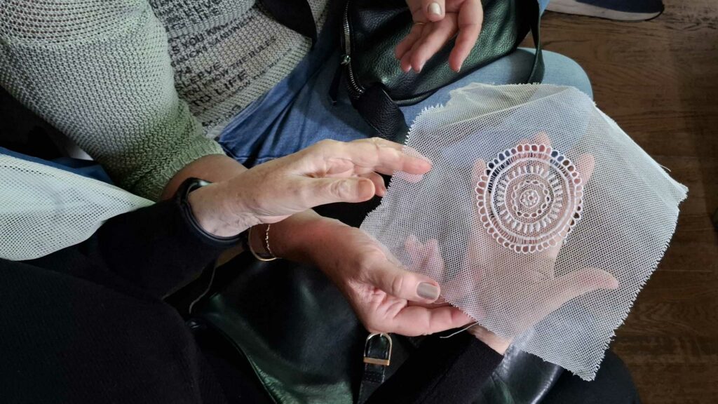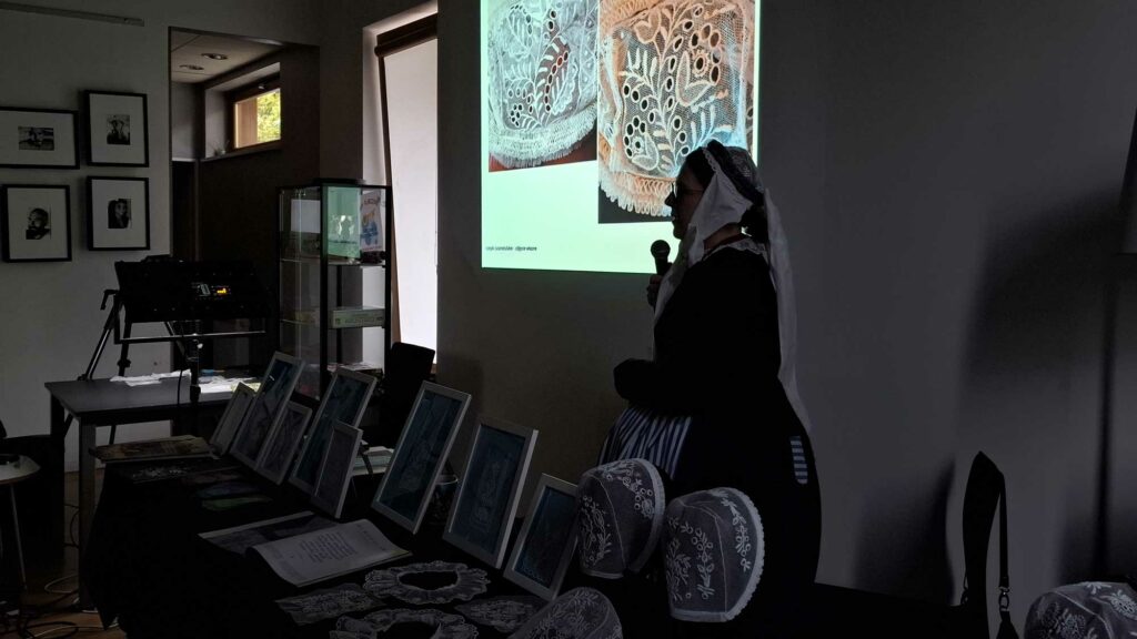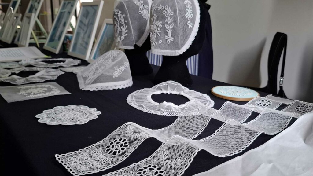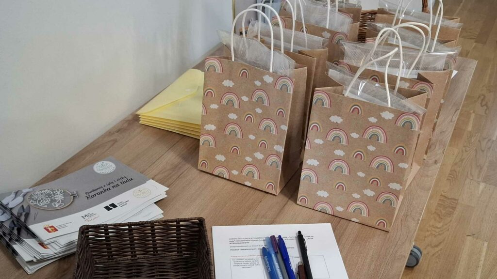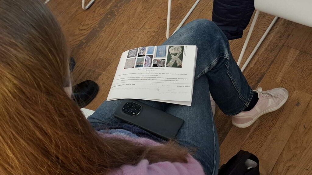 4 października 2025 roku mieliśmy przyjemność spotkać się z wyjątkową techniką – haftem na tiulu, który pozwala tworzyć delikatne, ażurowe koronki o niezwykłej subtelności i lekkości. Spotkanie poprowadziła Paulina Młynarczak (Wyszywoczka Paulina) – miłośniczka białego haftu i znawczyni haftu bamberskiego oraz szamotulskiego z Wielkopolski. Podczas wydarzenia uczestnicy poznali tajniki pracy z tiulem, dowiedzieli się, jak wyszywać oraz mieli okazję zobaczyć z bliska piękne przykłady koronek tworzonych tą techniką. Nie zabrakło też bezpłatnych konspektów z najważniejszymi informacjami o hafcie na tiulu oraz emocji podczas losowania zestawów startowych z bawełnianym tiulem, igłami i nićmi – idealnych do rozpoczęcia własnej przygody z tą sztuką.