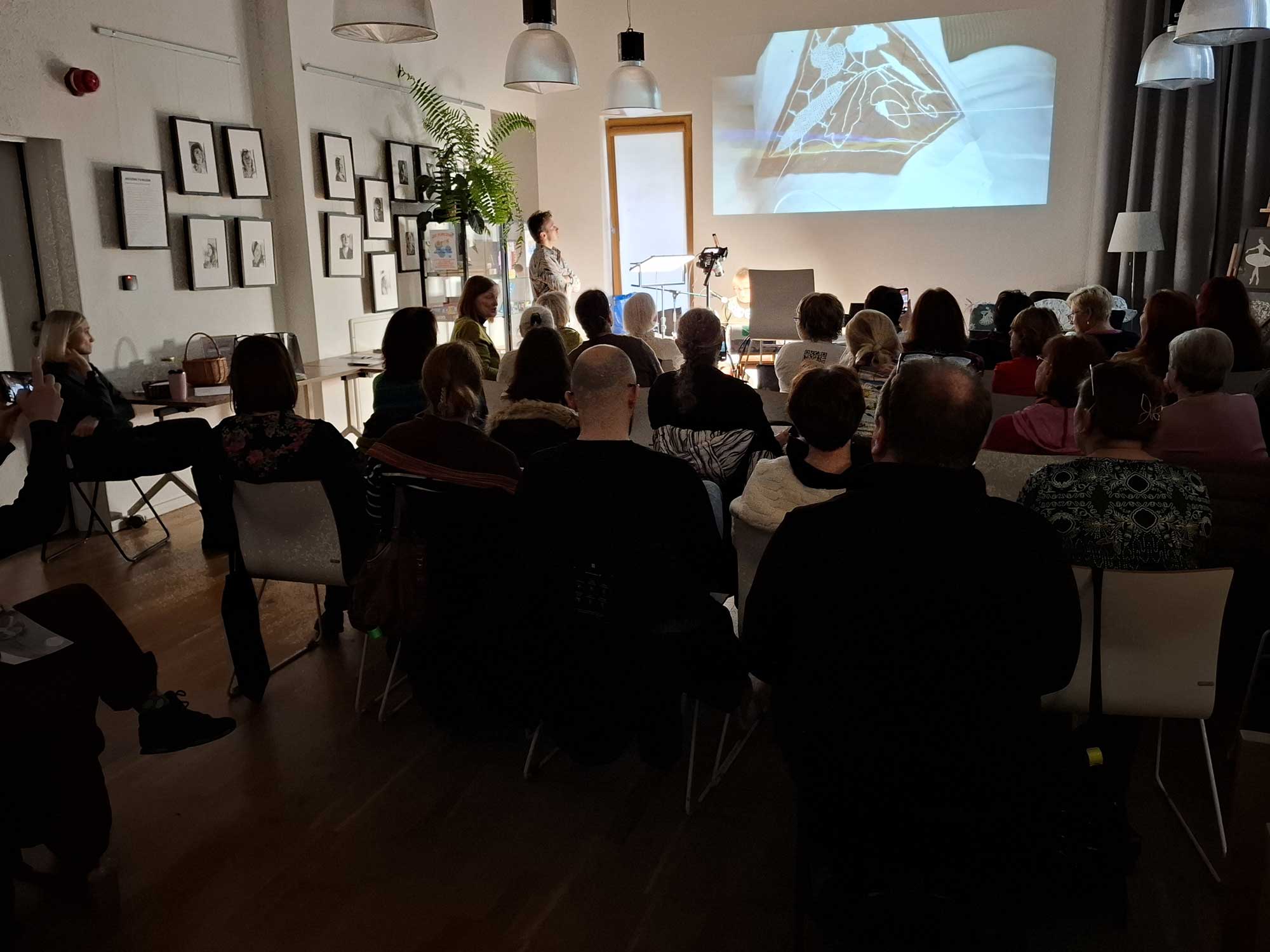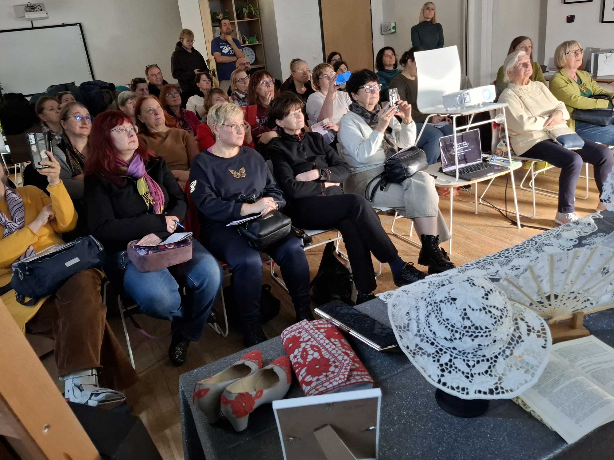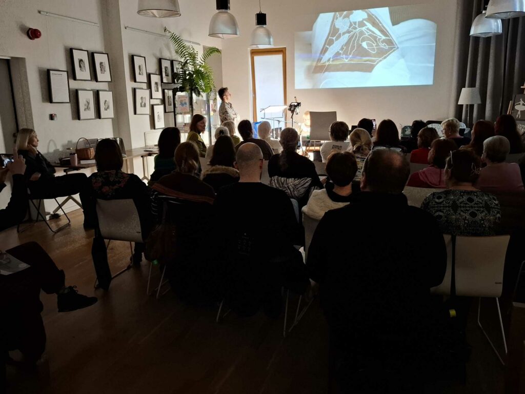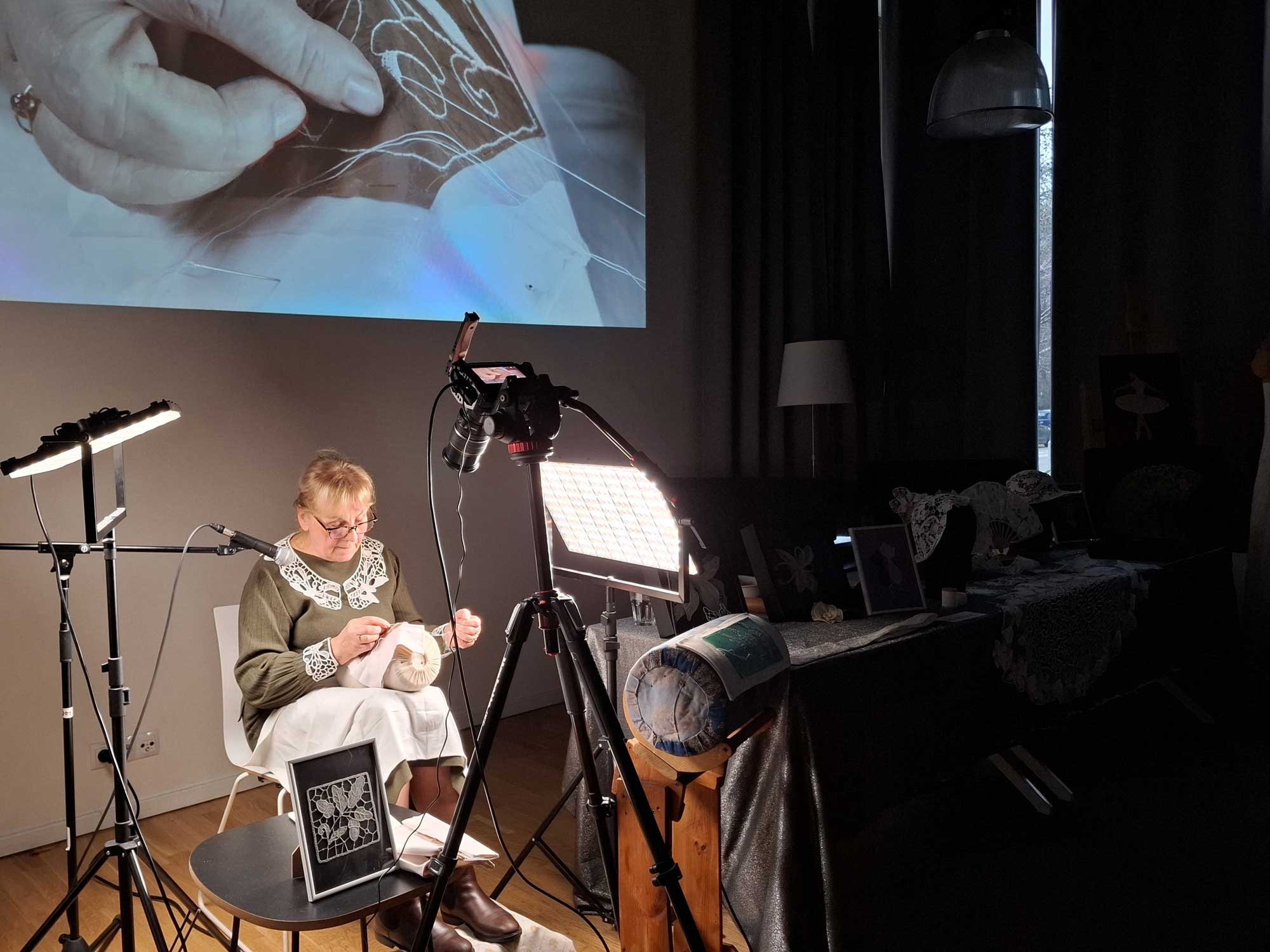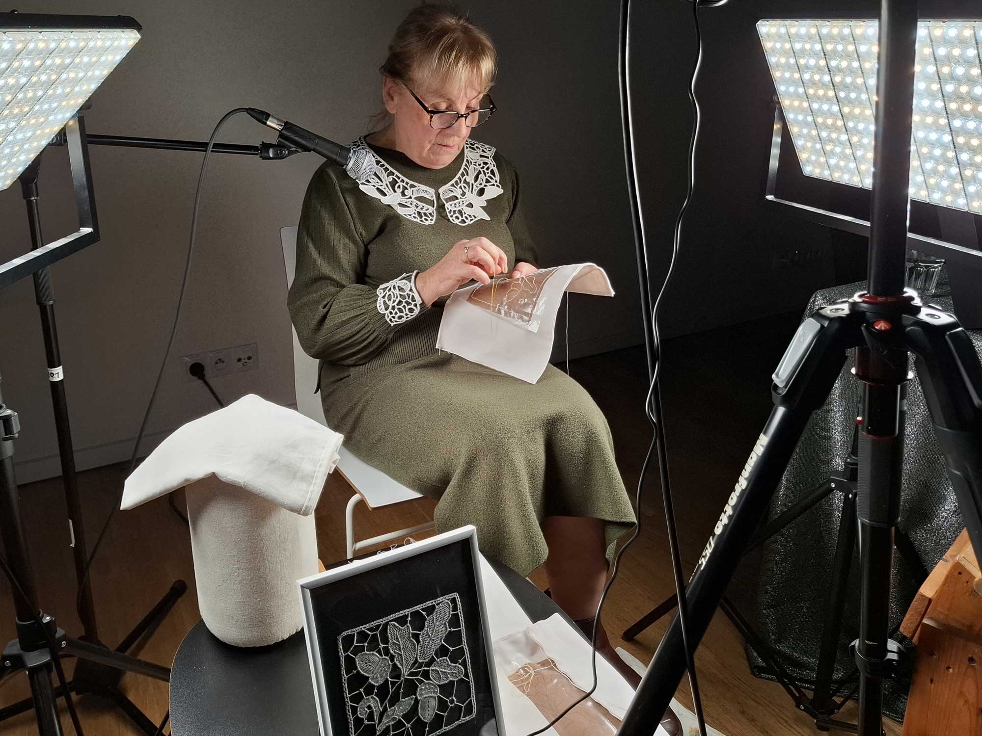 Koronkę igłową prezentowała Hanna Żak Nicpoń – doświadczona koronczarka, pasjonatka rękodzieła i laureatka wielu nagród. Podczas spotkania krok po kroku zaprezentowała proces powstawania koronki igłowej – od projektu, przez tworzenie konstrukcji, aż po wypełnianie wzoru. Uczestnicy mieli okazję zobaczyć prace z bliska, poznać narzędzia oraz zadać pytania dotyczące techniki i materiałów.