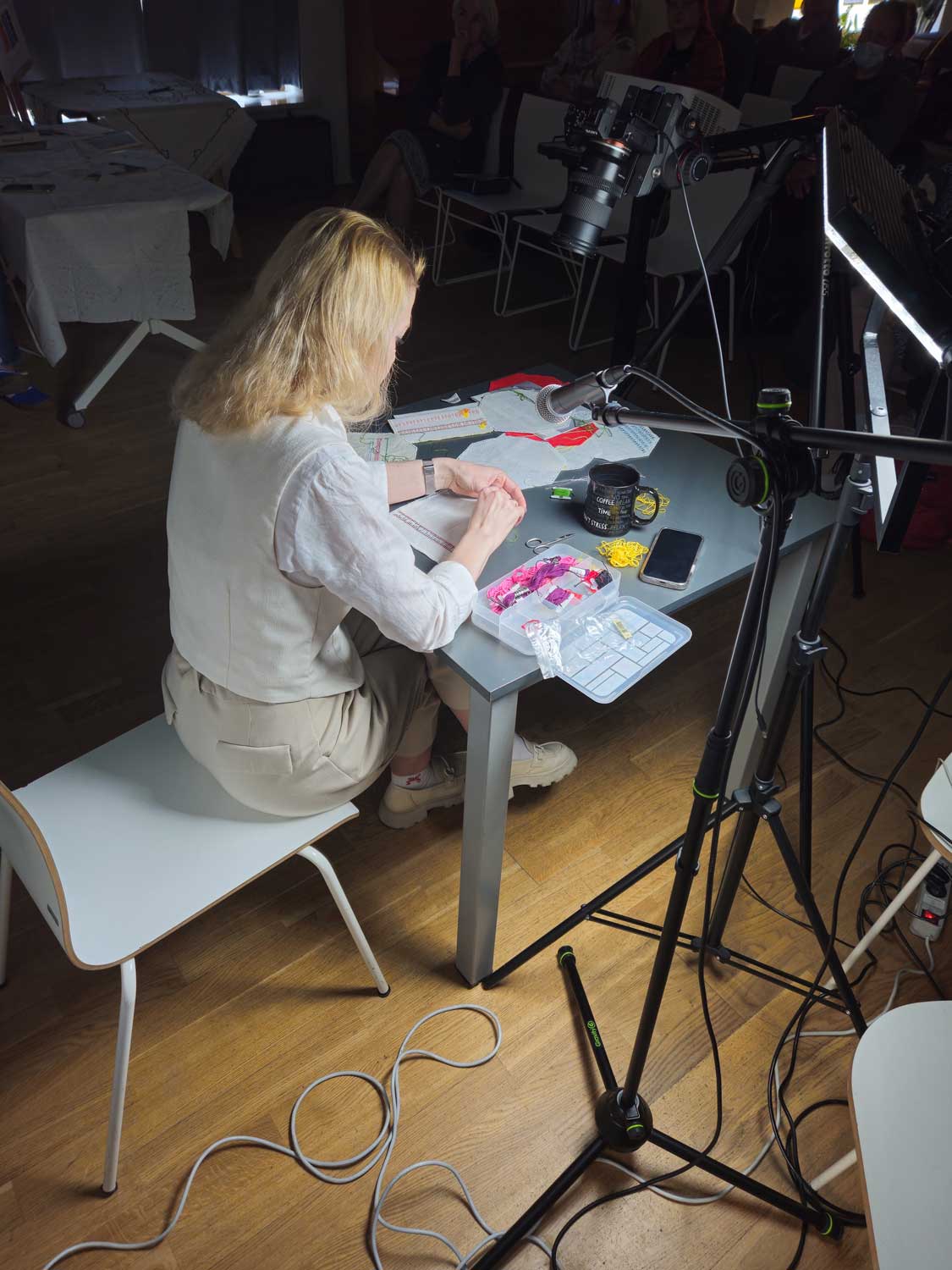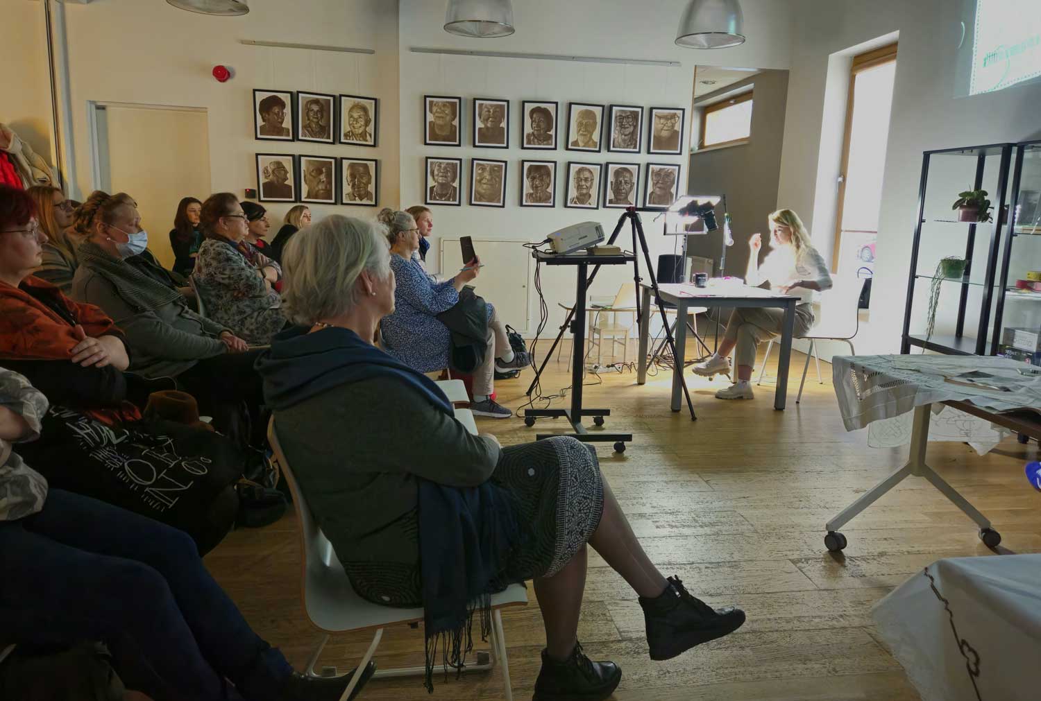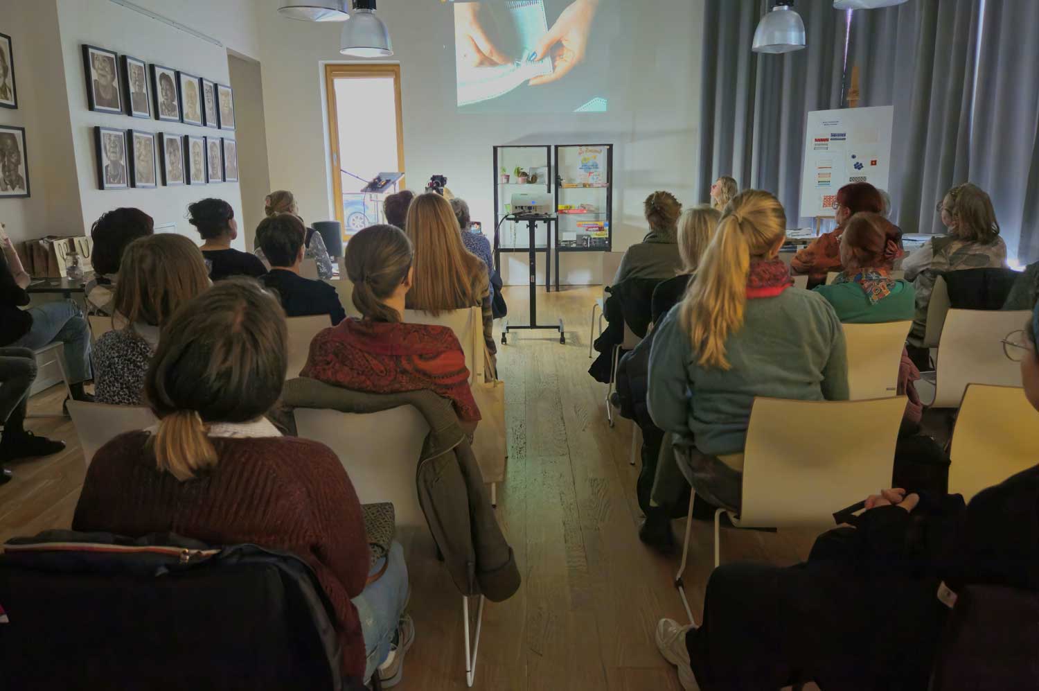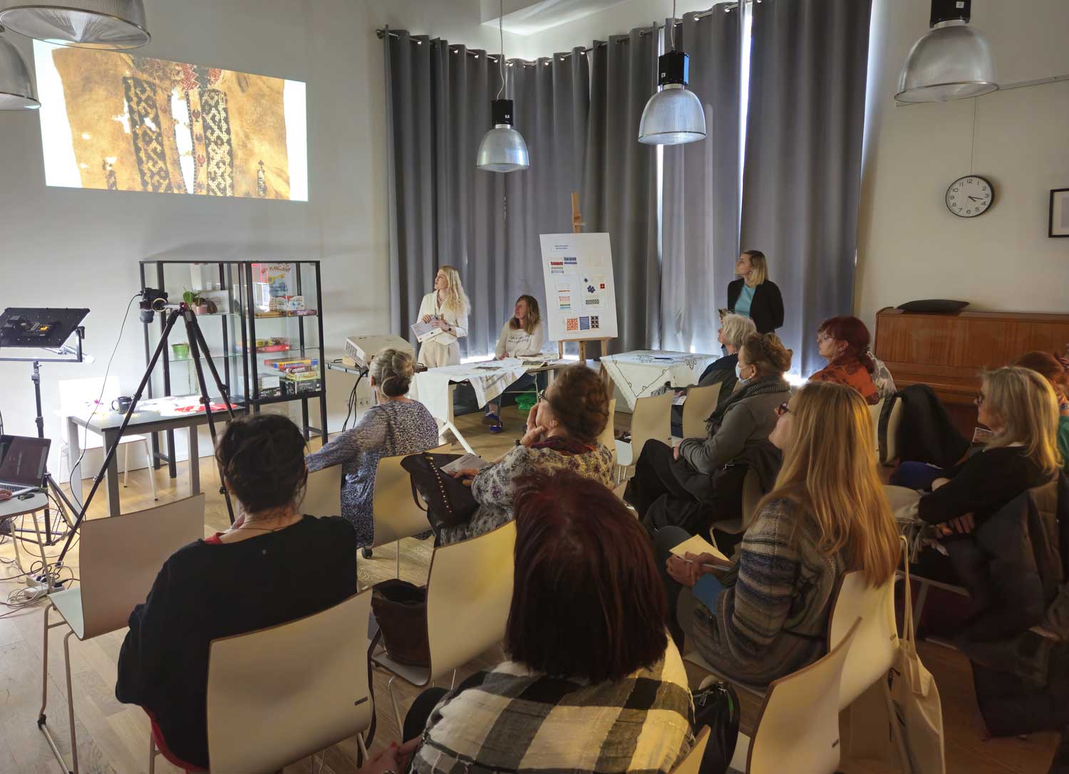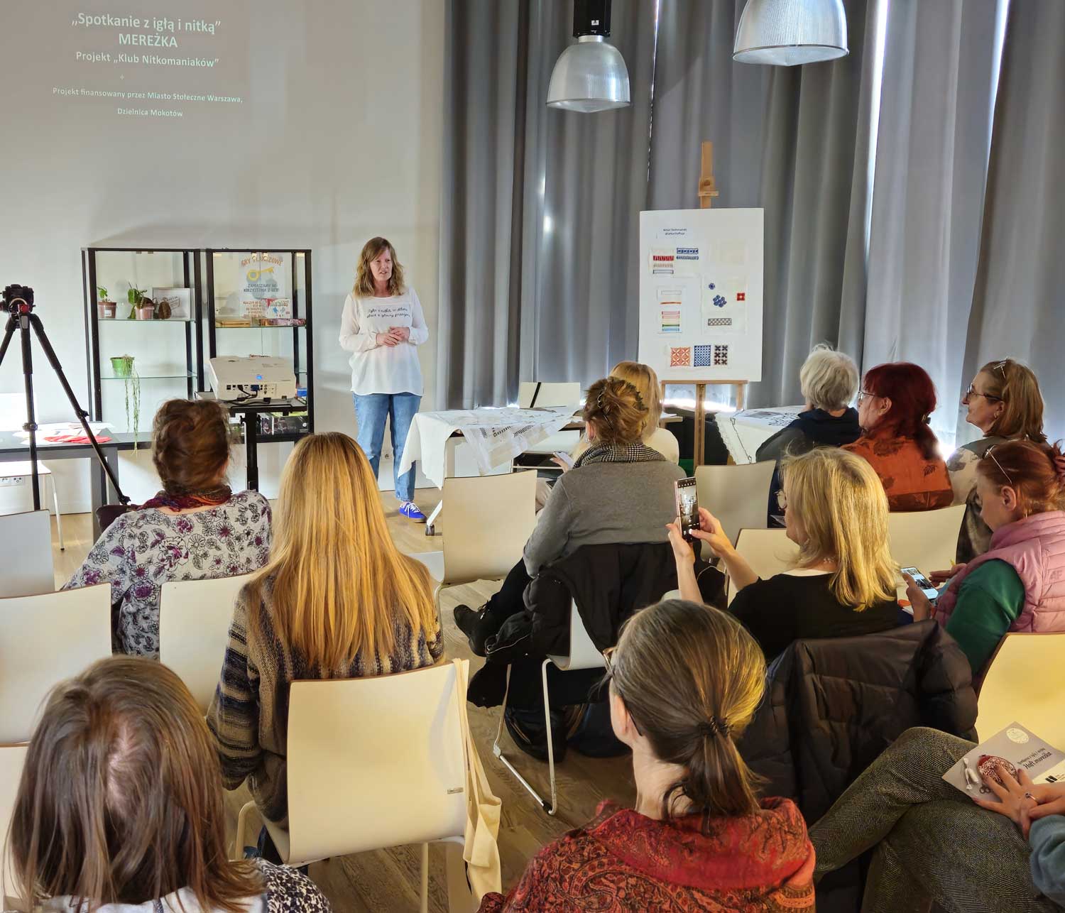 Spotkanie poprowadziła Oresta Kinash, która wprowadziła uczestników w świat tej subtelnej i eleganckiej techniki. Na początek wysłuchaliśmy krótkiego wykładu, a następnie z bliska mogliśmy przyjrzeć się, jak krok po kroku powstają podstawowe ściegi mereżki.