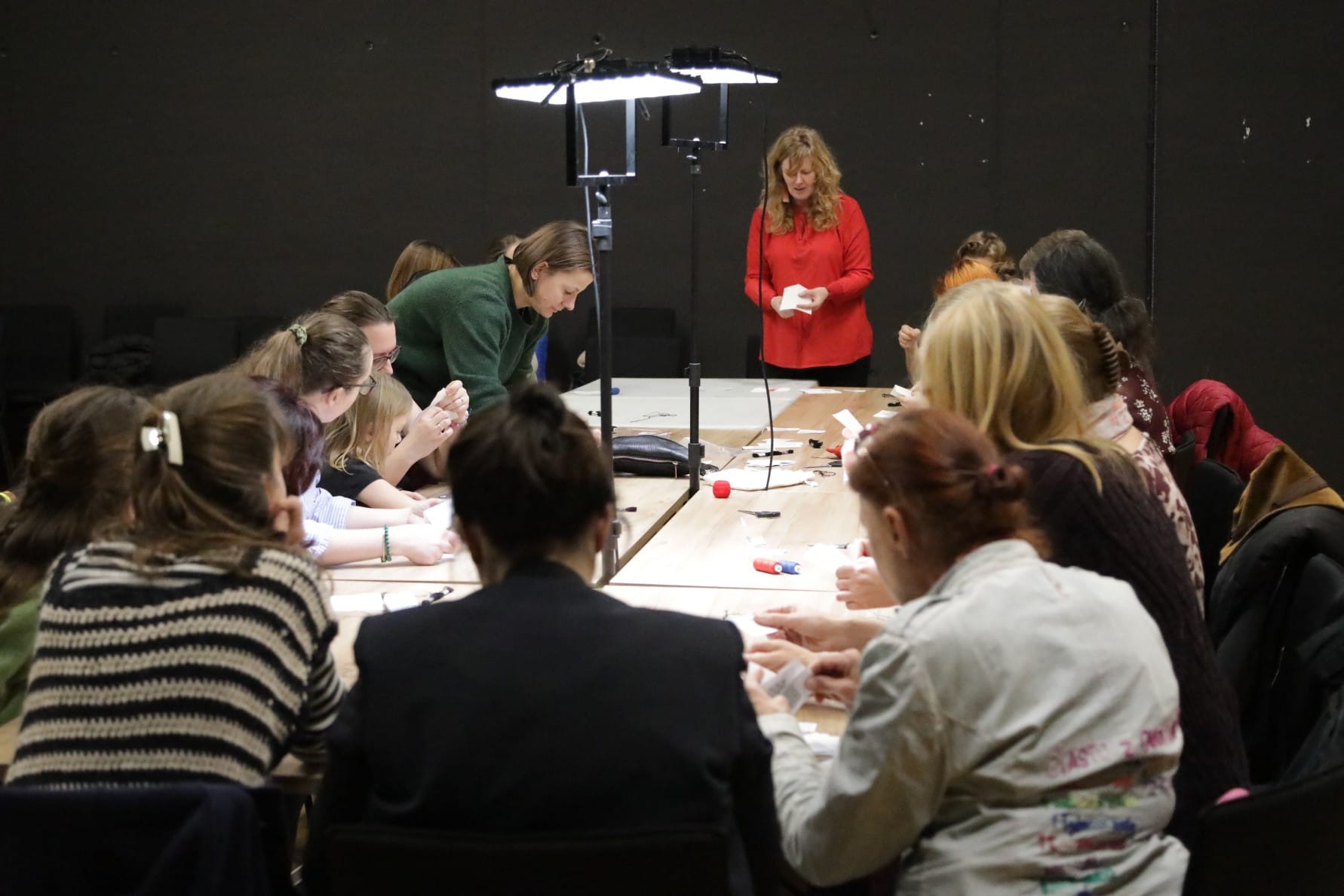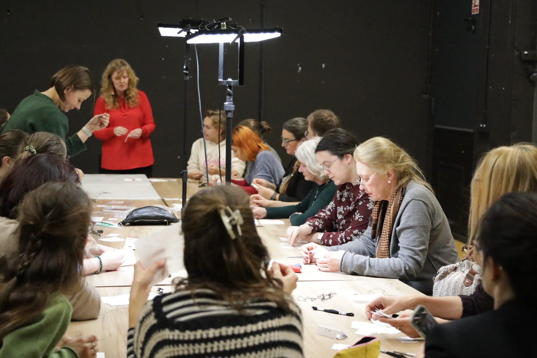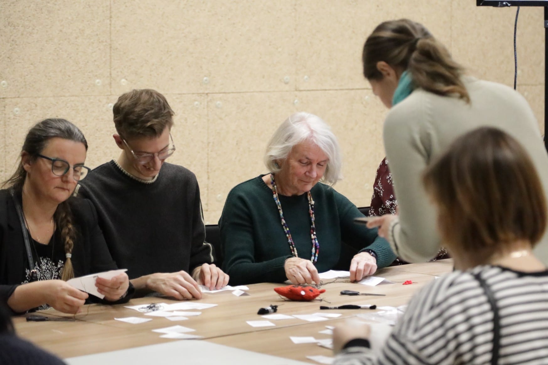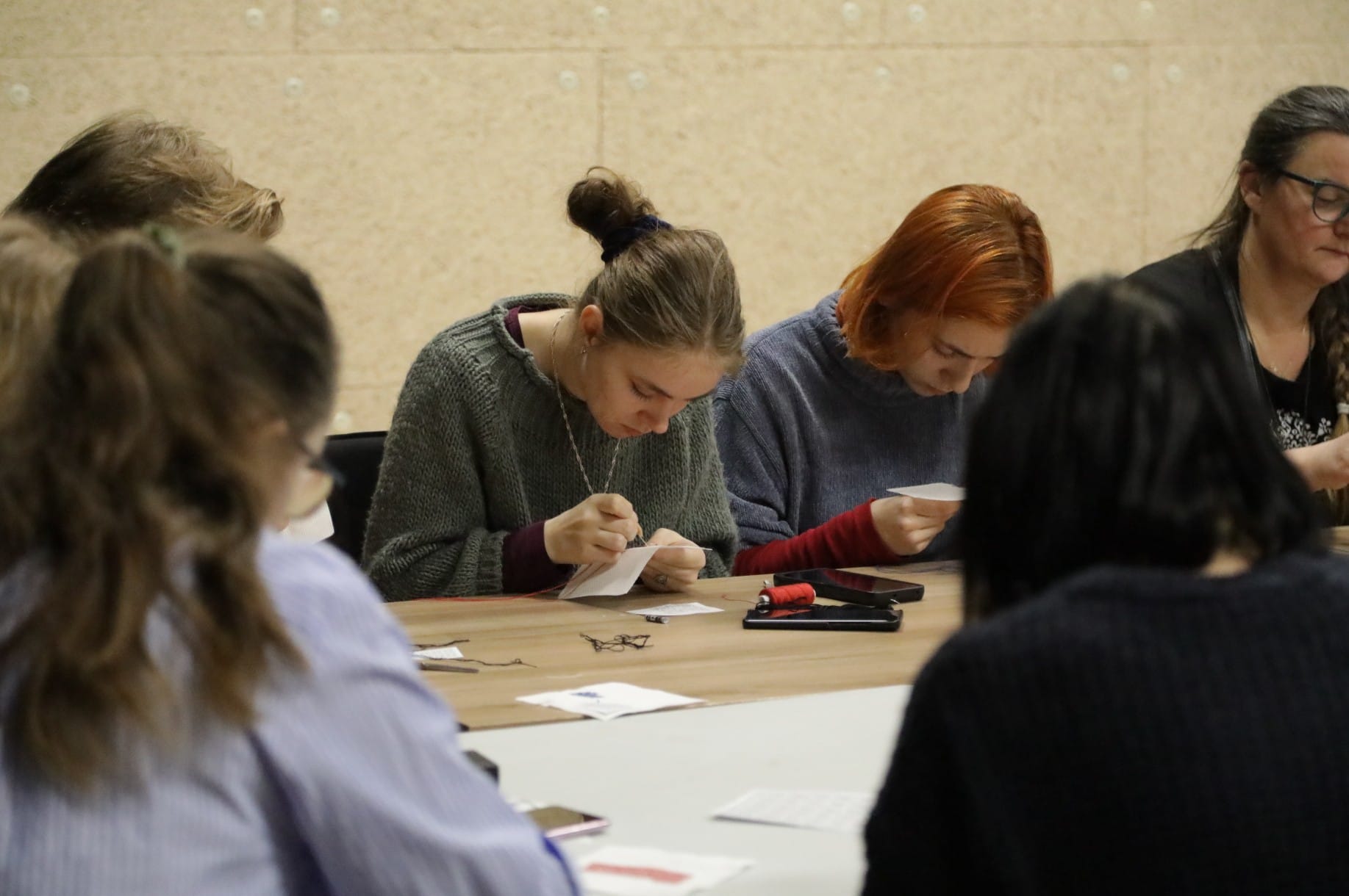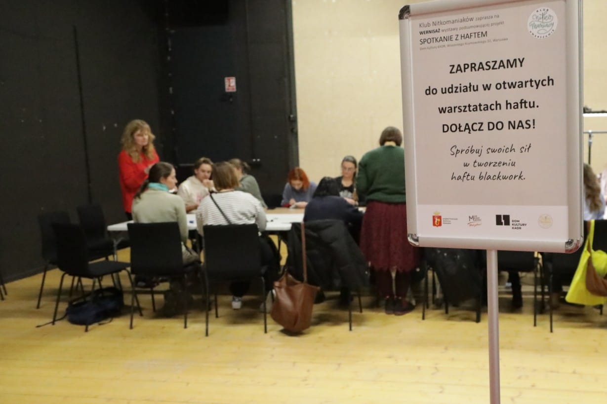 Podczas wernisażu uczestnicy mieli możliwość wzięcia udziału w otwartych warsztatach haftu blackwork, gdzie każdy mógł spróbować swoich sił w tworzeniu misternego wzoru.