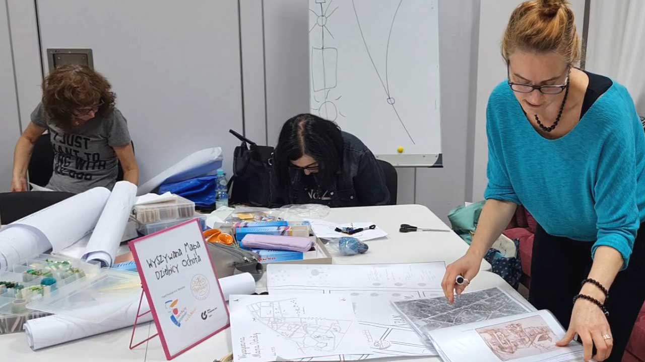 Projekt „Wyszywana Mapa Dzielnicy Ochota” to nie tylko wspólne tworzenie mapy. To również podążanie igłą i nitką wzdłuż ulic dzielnicy Ochota połączone z poznawaniem jej historii. Projektowi, od początku jego realizacji podczas warsztatów i spotkań, towarzyszyła przewodniczka turystyczna Sylwia Strojnowska. Dzięki jej obecności i interesującym opowieściom dowiedziałyśmy się jak na przestrzeni lat rozwijała się ta jedna z piękniejszych dzielnic Warszawy. Uzyskałyśmy informacje o kluczowych projektach i założenia urbanistycznych, począwszy od Filtrów, poprzez projekt utworzenia dzielnicy Marszałka Piłsudskiego, aż do Kampusu UW. Nie zabrakło również historii o czasach II wojny światowej i przebiegu walk w tym rejonie. Każde spotkanie uatrakcyjniły prezentacje archiwalnych zdjęć.