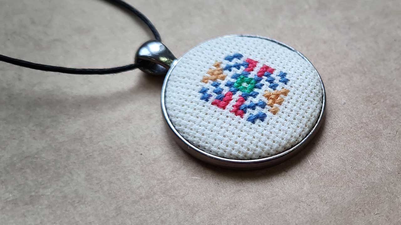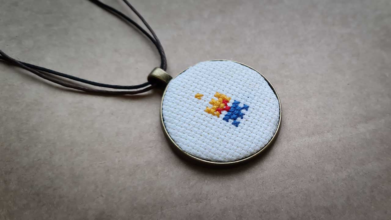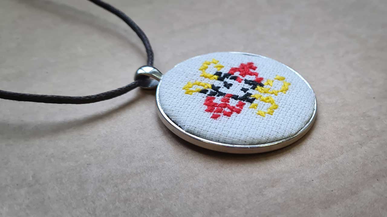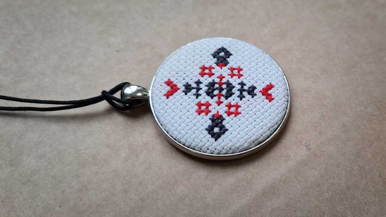 Ukraiński haft krzyżykowy w formie talizmanu.