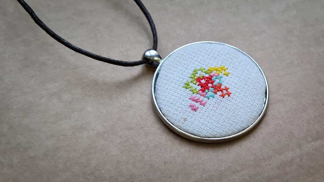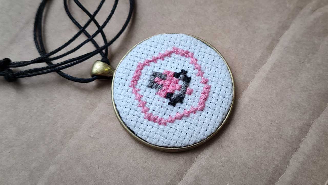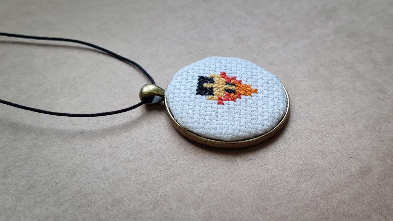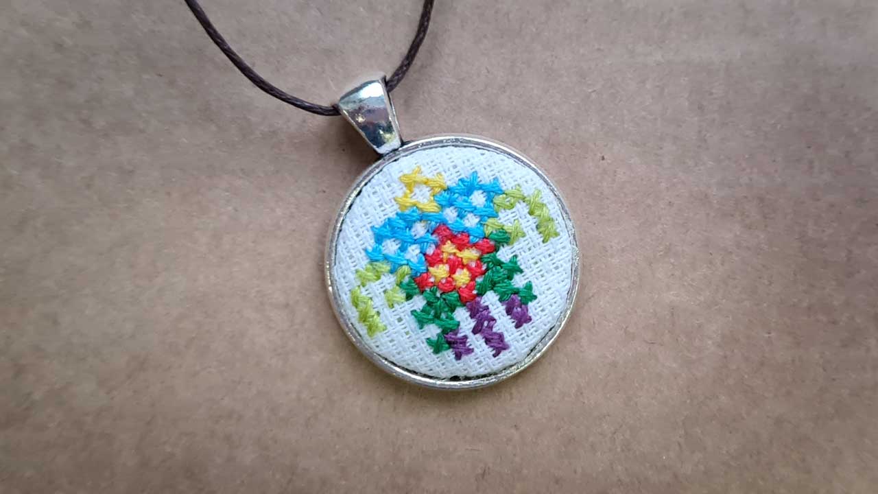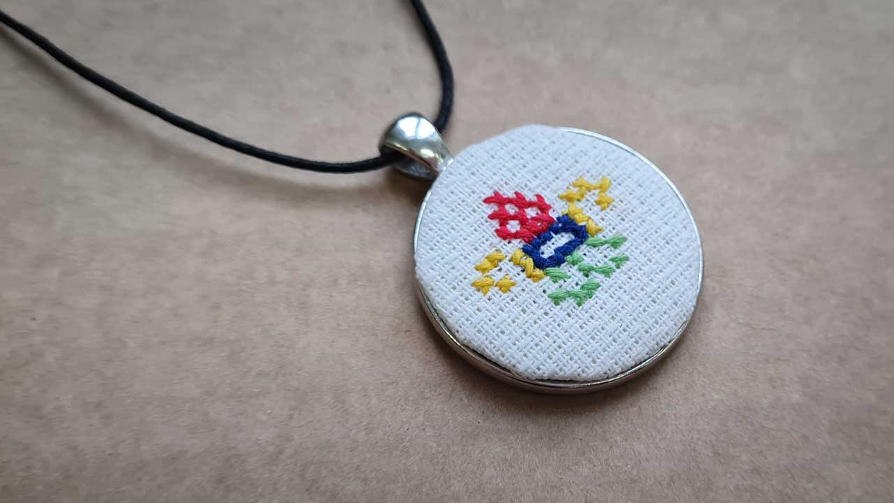 Ukraiński haft krzyżykowy w formie talizmanu.