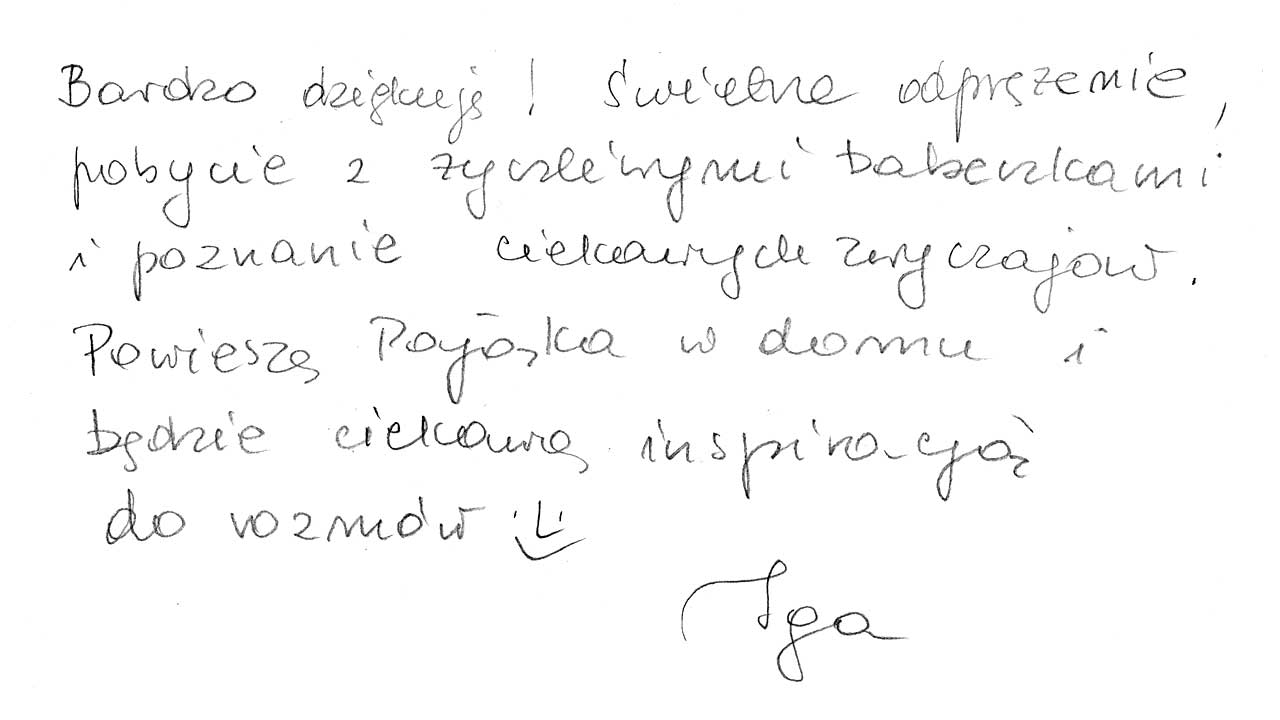 Чудова ідея, добра праця, гарно проведений час в польсько-українському товаристві. Дякую.